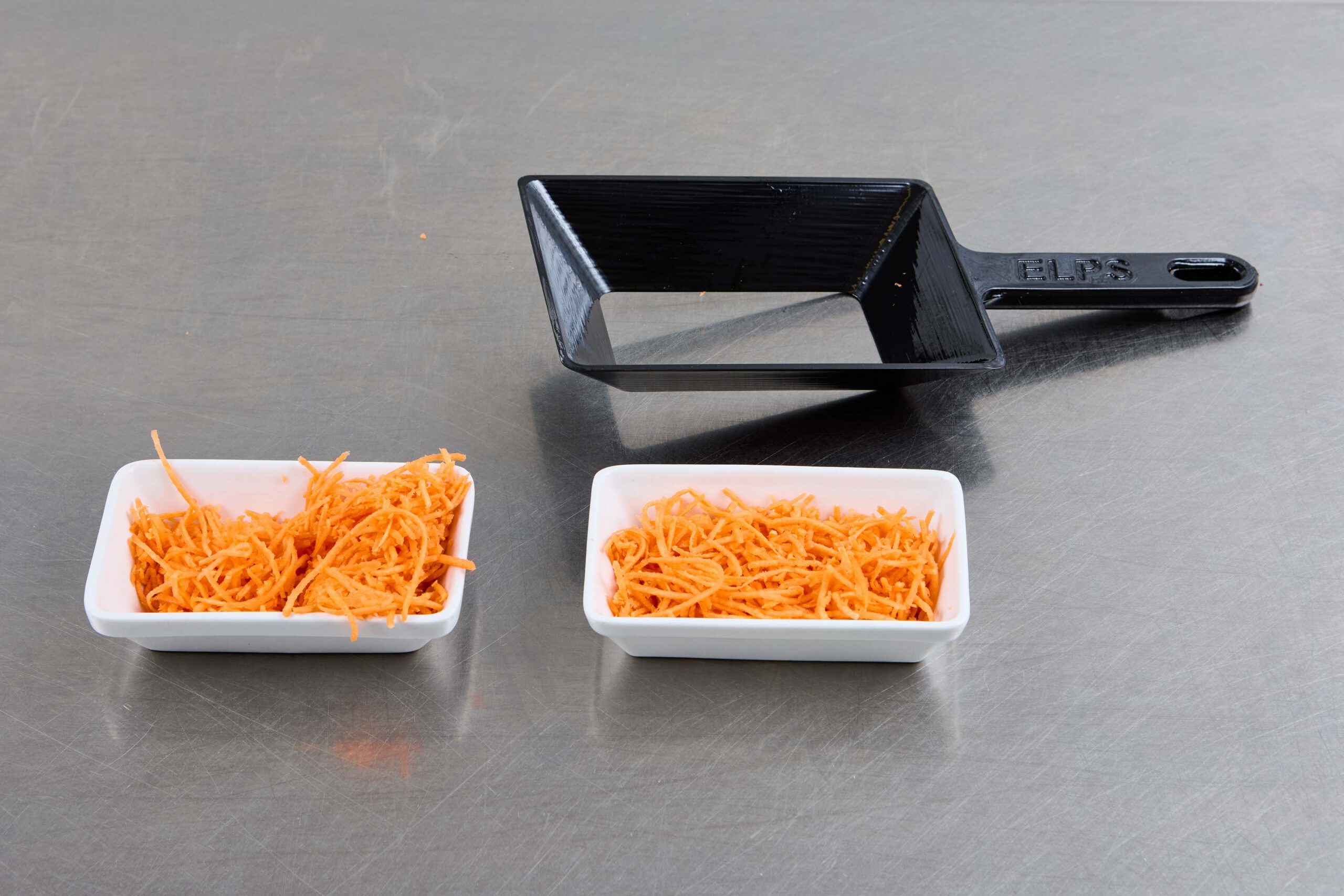 Entonnoir de production passage libre de 120mm x 65mm pour contenants 135mm x 80mm (+/- 10mm). Etude possible d’autres formats sur mesure.